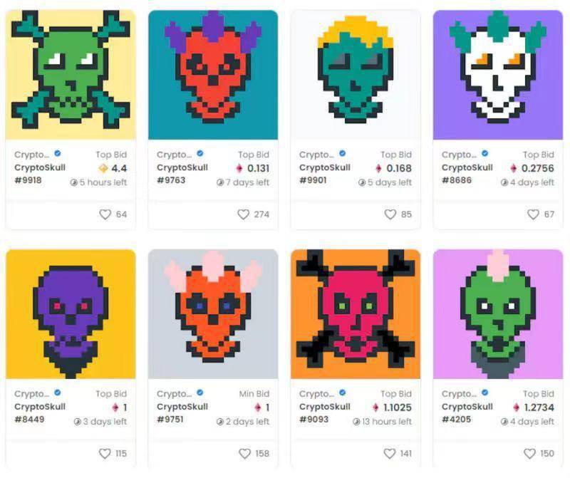 图4-5 部分CryptoSkulls NFT 交易界面展示