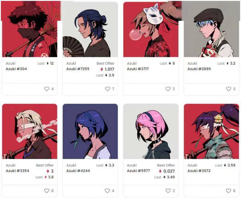 Azuki 已于北京时间2022年1月21日凌晨4点揭露具体的头像内容,是偏日系二次元风格的漫画头像。
