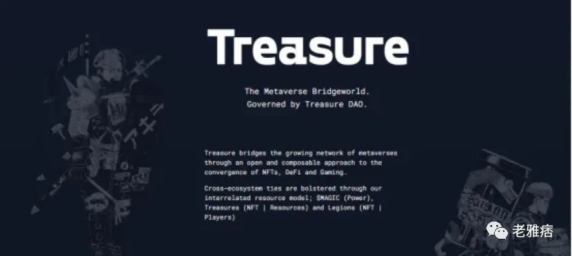 Treasure是个由NFT交易市场、DeFi获利模型和多项目NFT游戏世界组成的区中心化NFT生态项目。Treasure基于以太坊Layer 2 Arbitrum链开发,目前生态已经完成了NFT发射台启动和TreasureDAO的治理体系建立,并上线了Smol Brains、Legions等NFT项目。