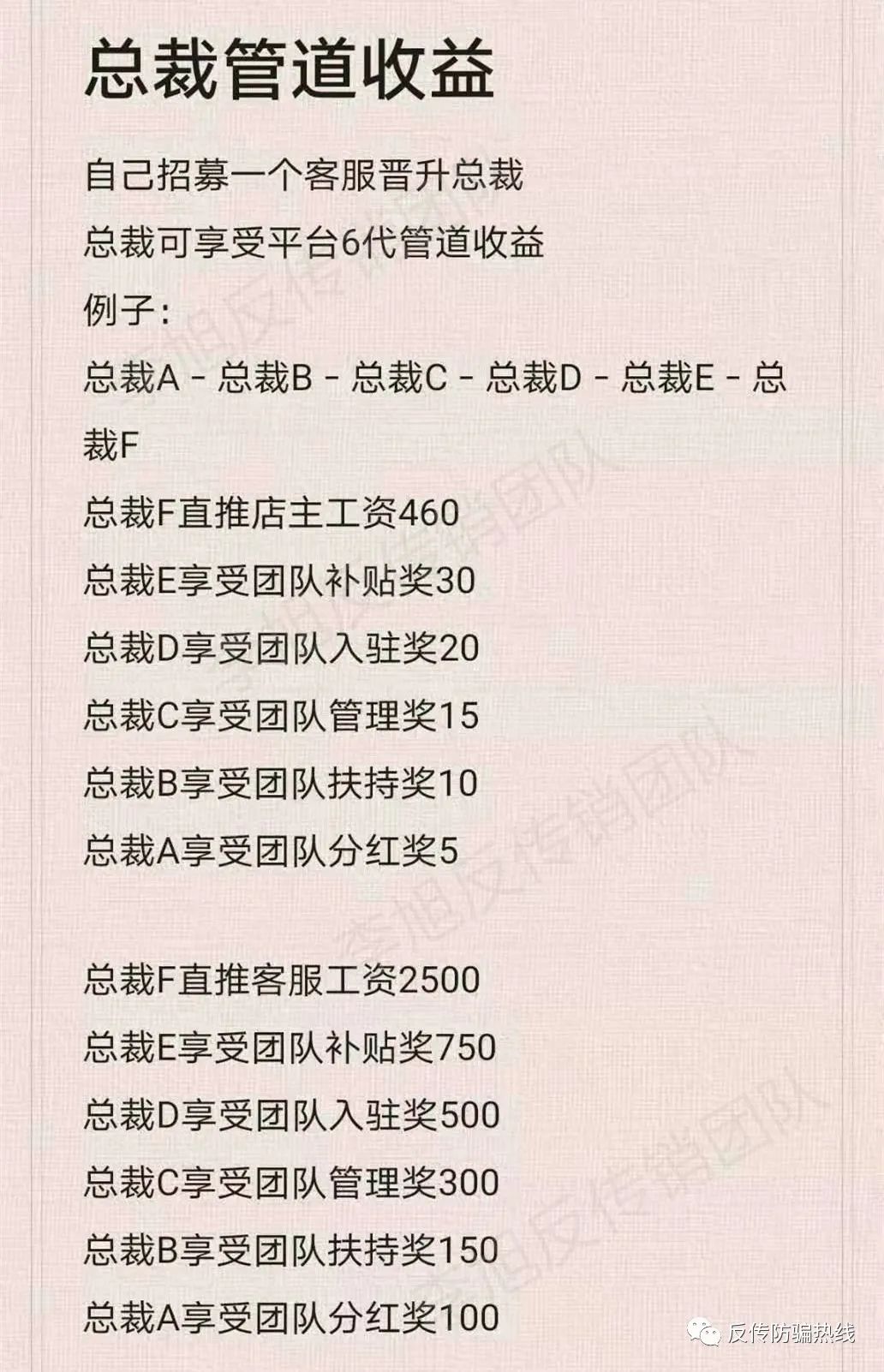 比如,总裁直推店主奖励460元,总裁直推客服奖励2500元;