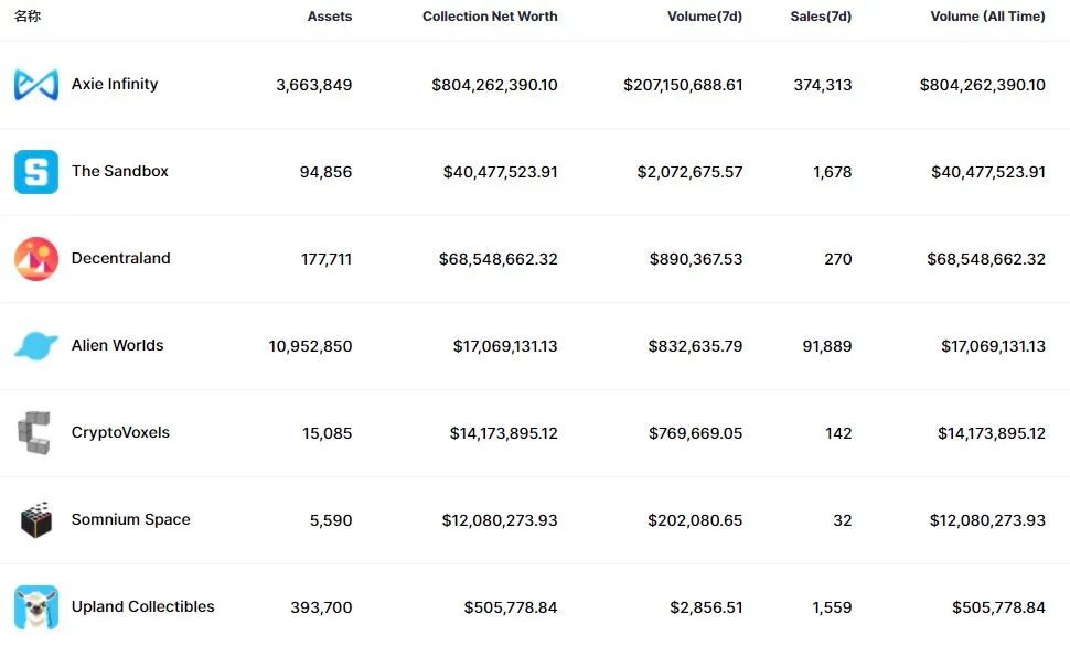 元宇宙中多种资产,比如 The Sandbox,Decentraland,Crypto Vexels,Somnium Space 等游戏中,虚拟土地都是以NFT形式进行。Axie Infinity 也可以归于元宇宙的类别之中。近期元宇宙概念热度非常高,特别是元宇宙为将来人类社会数字化转型提供了新路径,未来发展可期。
