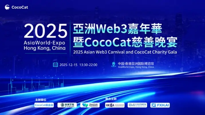 据悉,由CocoCat基金会与深创学院联合主办的“2025亚洲Web3嘉年华暨CocoCat慈善晚宴”定于2025年12月15日在香港亚洲国际博览馆举行。本届活动以“隐私重构信任,价值驱动公益”为主题,预计将吸引超万位全球行业参与者。