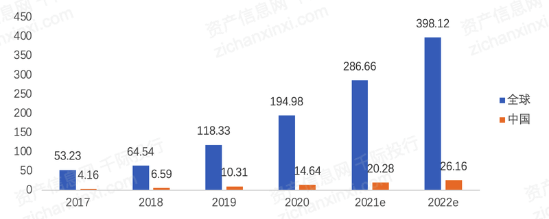 图:全球及中国RPA市场规模(亿元)