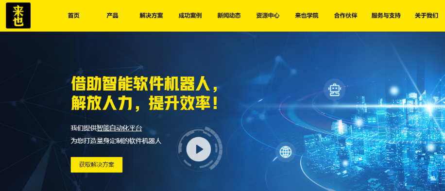 来也科技是中国乃至全球的RPA+AI行业领导者,为客户提供变革性的智能自动化解决方案,提升组织生产力和办公效率,释放员工潜力,助力政企实现智能时代的人机协同。