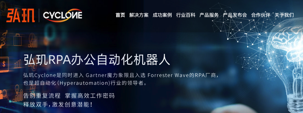上海弘玑信息技术有限公司成立于2015年,旨在高速发展的企业数字化转型中,为客户提供安全可靠、高效适应、扩展协作的人工智能数字员工解决方案,并致力于创造先进的数字员工机器人生态体系。主要业务是开发、销售具有自主版权和知识产权的人工智能软件产品——Cyclone RPA(Robotic Process Automation)。