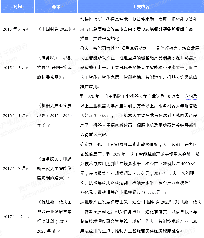图:人工智能机器人行业重要政策汇总