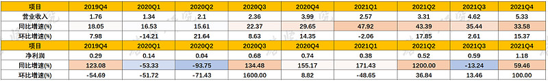 2021年Q4单季度,实现收入5.33亿元,同比增长33.58%,环比增长15.37%;净利润1.18亿元,同比提升59.46%,环比增长100%。