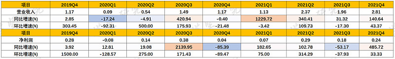 2021年Q4单季度,实现收入2.81亿元,同比增长140.6%,环比提升43.37%;归母净利润0.24亿元,同比提升485.72%,环比提升33.33%。