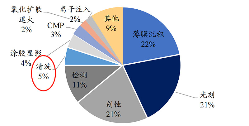 半导体清洗设备,在全球半导体设备中市场占比约为5%。