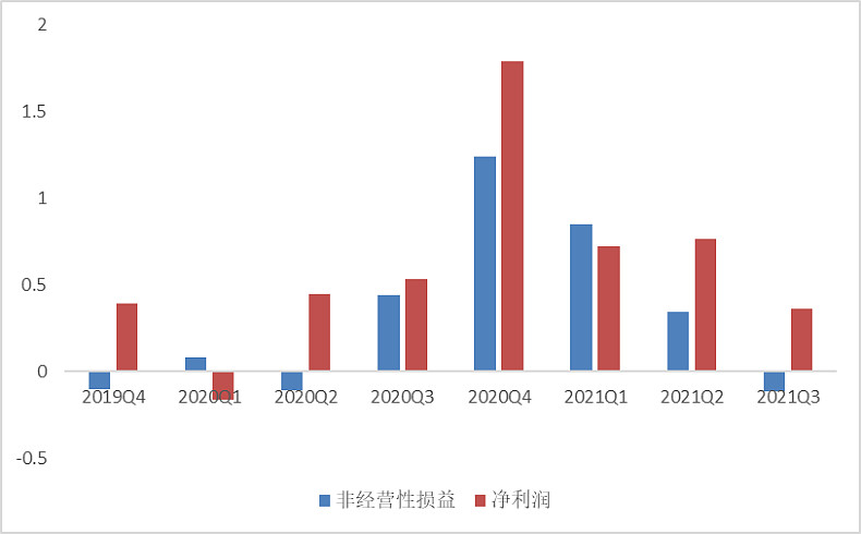 1)使用闲置募集资金理财获得投资收益0.1亿元,同比增长5820.6%,占比26%;2)收到地方政府上市补贴款0.18亿元,同比增长1726.47%,占比47.37%。