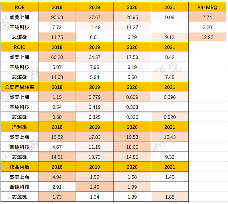 盛美上海ROE较高,是因为净利率和总资产周转率较高。其中,净利率高是因为其主营业务毛利率高于芯源微和至纯科技。