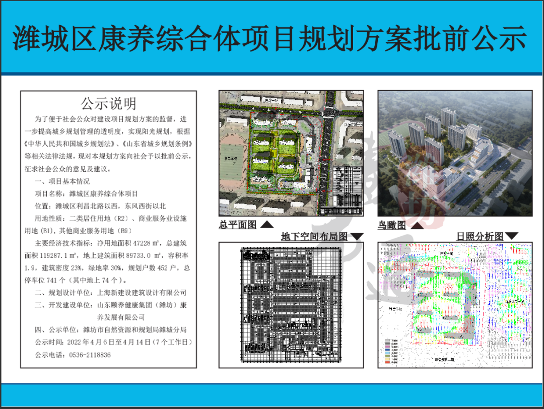 近日,潍城区康养综合体项目规划方案进行批前公示。这就是以前的国欣颐养康养综合体项目。