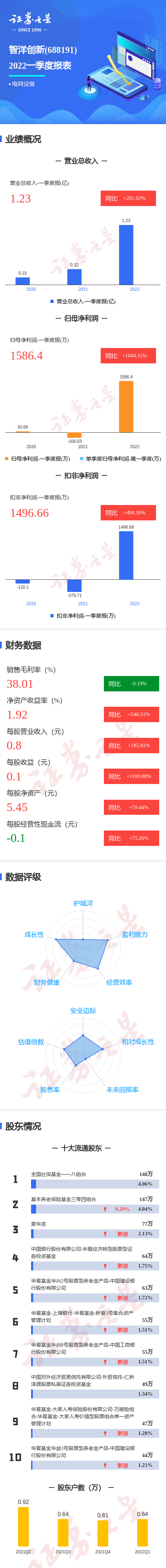 图解智洋创新一季报:第一季度单季净利润同比增1044.11%