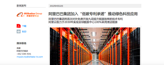 摘要:新浪科技讯 4月22日下午消息,阿里巴巴发布公告称,阿里巴巴集团加入“低碳专利承诺”推动绿色科技应用,将首次对外免费开放九项提升能源效率的技术专利,阿里云致力于2030年实现全球数据中心100%采用清洁能源。