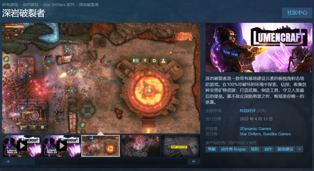 摘要:《深岩破裂者》的名字就很容易让人想起前阵子大火的《银河破裂者》,玩法也是相同的塔防加射击。 商店页:s.team/a/1713810/ 《深岩破裂者》的世界背景设定在未来的2221年,地表因为污染已经不再适合居住,幸存者来到了地底,依靠一种叫做流明矿的东西苟延残喘。 玩家将作为一名勘探员,前往未