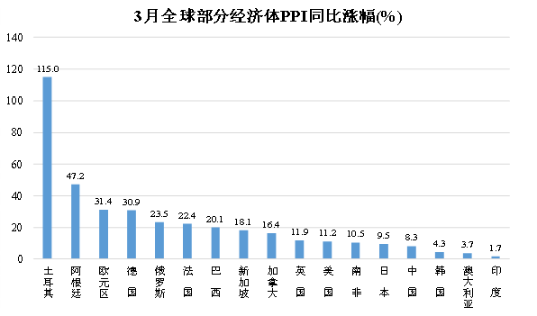 专家指出,2021年以来国际通胀水平明显上行,告别长达十余年的低通胀时代,特别是今年以来国际通胀水平进一步快速上行,美欧等经济体物价连续创下多年或历史新高。3月份,美国居民消费价格指数(CPI)、工业品出厂价格指数(PPI)同比涨幅分别扩大至8.5%、11.2%,分别续创40年来和历史新高;欧元区CPI、PPI同比涨幅分别扩大至7.5%、31.4%,续创历史新高;少数国家甚至呈现恶性通胀态势。