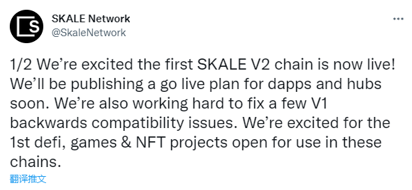 PANews 4月24日消息,据SKALE Network官方推特,以太坊侧链SKALE V2链现已上线,将很快发布DApp和Hub的上线计划,也在努力修复一些V1向后兼容性问题。
