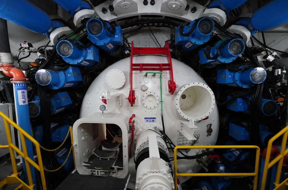 穿越城市副中心站的这段隧道,是东六环改造工程盾构掘进最深区域,地下埋深达59米,承压水水头达0.8兆帕,穿越长度达207米,地下水位高、地质土层密实、渗水性强,需长距离不停机施工,技术难度大、施工要求标准高。