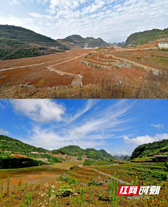 花垣县龙潭镇糯米冲矿区生态修复前后对比。