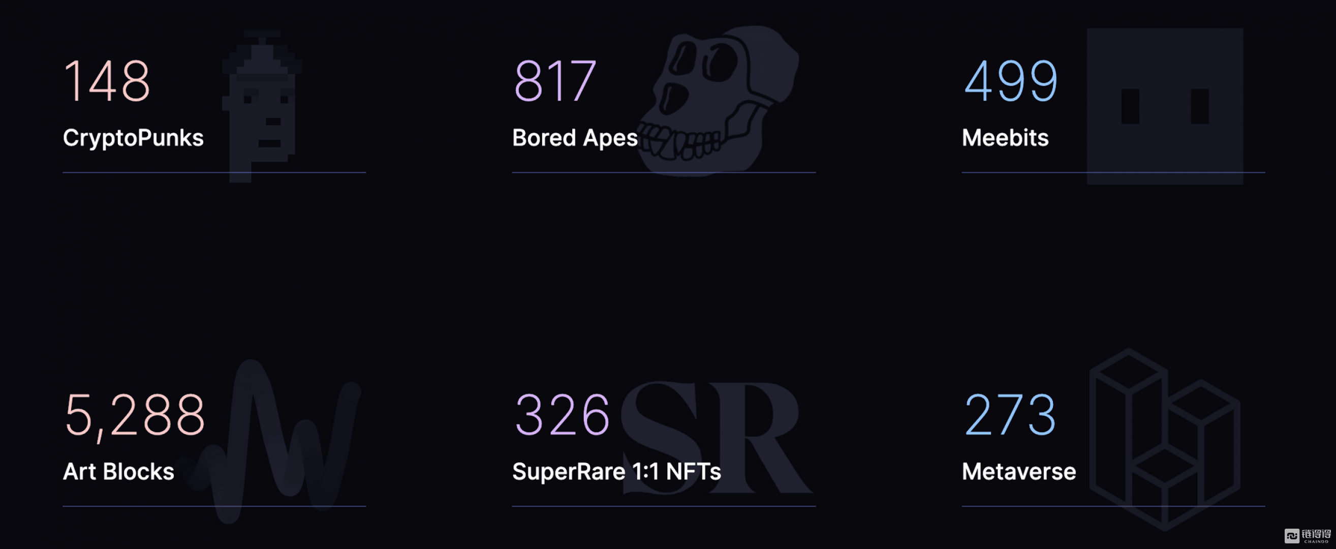 比对分析如果仅仅只看 Moonbirds一家数据可能无法让人产生直观的认识,下面就与NFT 领域的其它项目进行一下比对。