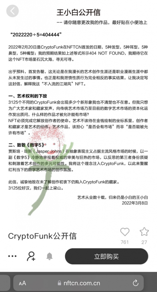 要说我最羡慕哪匹黑马,那非CryptoFunk莫属。2022年2月20号,不入流艺术家王小白凭借一封公开信成功出圈,前呼后应的藏家如“信徒”般慕名而来,在王小白本人完全没有现身的情况下,藏友自发组织了社群,二创层出不穷,有人设计了Funk的周边,还有人为Funk自发组织了直播云蹦迪,且不说这些为爱发电的行为,Funk社群内脱俗的氛围和持续的活跃度真是其他IP社群羡慕不来的。