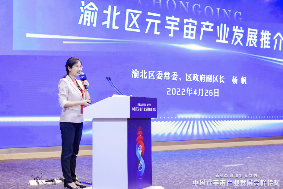 渝北区委常委、区政府副区长杨帆详细介绍了渝北区元宇宙产业发展情况。她表示,渝北将实施“6个一”工程,即开发一批特色应用场景、打造一批高端研发机构、培育一批优质企业、培养一批创新人才、组建一个产业联盟、制定一批行业标准。