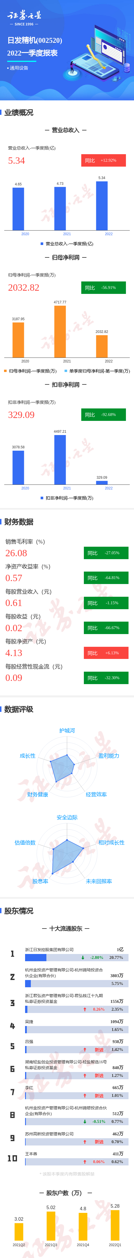 图解日发精机一季报:第一季度单季净利润同比减56.91%