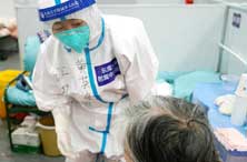 上海:升级方舱收治老年感染者 4月25日,在上海临港方舱医院,一名老年患者与医护人员交流自己过往用药史。4月25日,记者在上海临港方舱医院内看到,在对约2000张床位进行升级改造后,该方舱医院床位配备氧气钢瓶、监护仪、吸痰器等设备,陆续收治老年感染者。 26日