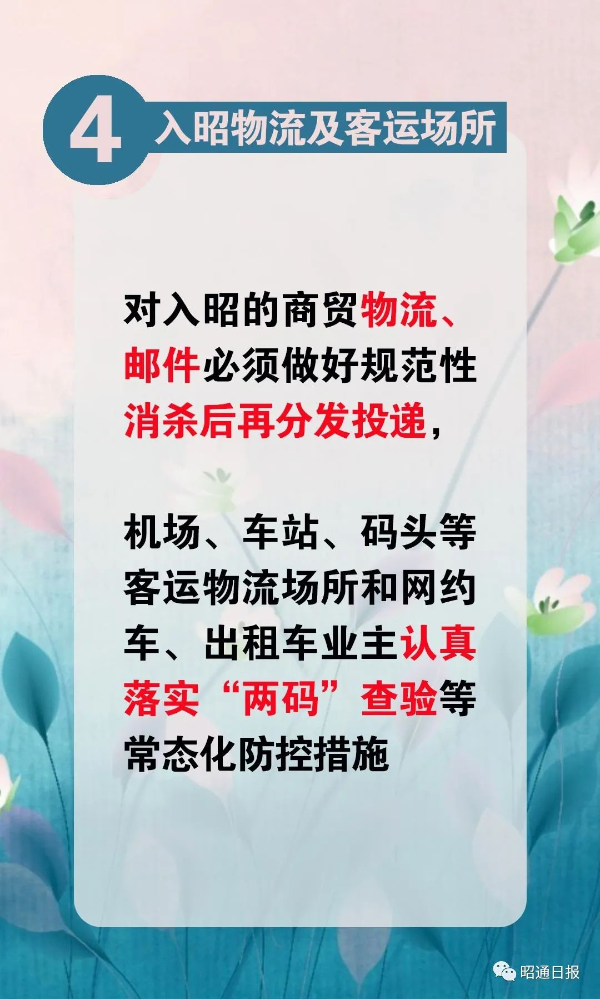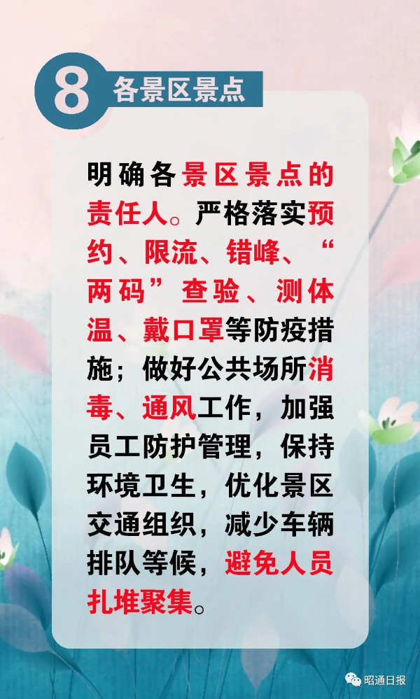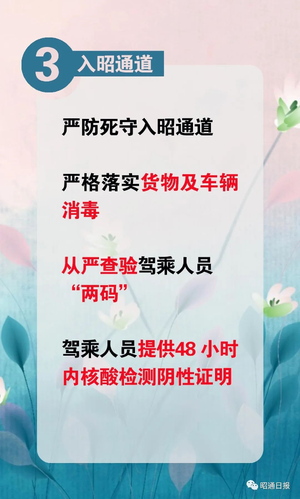 二、配合做好疫情防控。所有省外来滇人员、在滇流动人员应提前了解目的地防控政策,严格按照相关要求主动配合落实信息报备、“两码”查验、体温检测、健康监测、核酸检测、隔离观察等疫情防控措施。