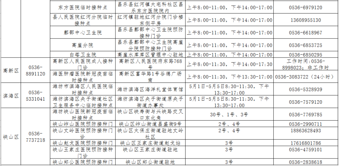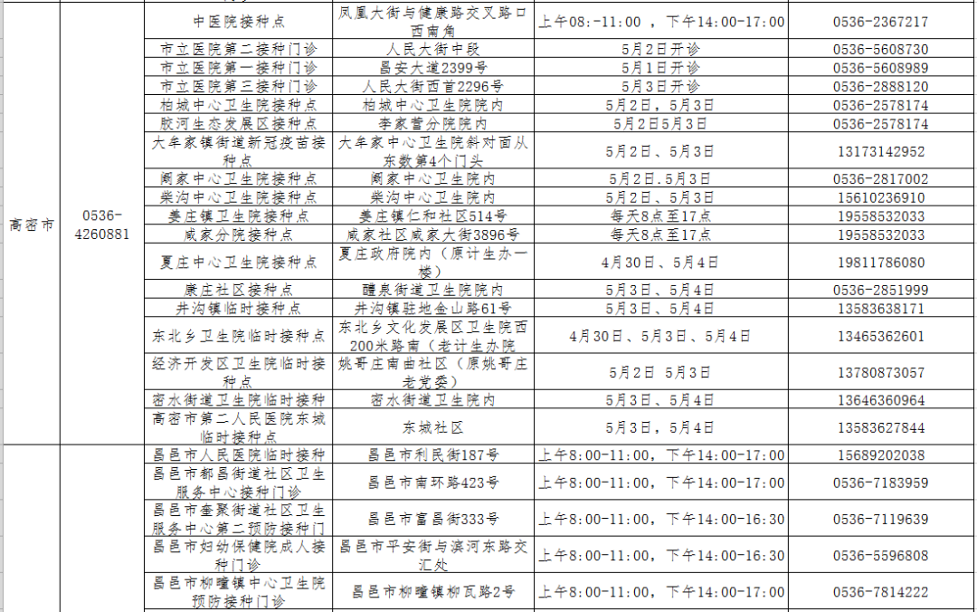 “五一”不打烊!潍坊市各接种单位五一期间继续提供新冠病毒疫苗接种服务