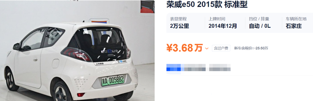 荣威e50:这是荣威早期推出的一款纯电微型车,早期车型的价格卖到了23万多元(不含补贴),续航里程120km,没有快充功能,配备的是磷酸铁锂电池,配置方面除了搭载了一块中控液晶屏,其余没有什么亮点。现在这款车8年车龄、2万公里的二手车价格在3万多元。