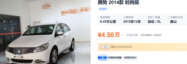腾势:这款车是比亚迪和德国戴姆勒较早联合推出的一款纯电中型车,2014款车型价格最高卖到了近40万元,属于绝对的高端纯电汽车。2014款车型的续航里程为253km,2017款之后的车型续航里程超过了300km。在动力方面,2014款的腾势搭载的是86kW电机,零百加速13秒多,采用的是磷酸铁锂电池。现在2014款车型的车龄已经有6-7年了,里程数低于7万公里的二手车,价格在4万元出头。