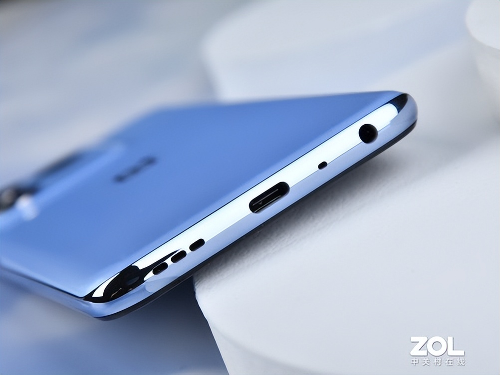 本次上手体验的光速蓝配色版,该版本后盖采用高压一体注塑成型, 相比普通的注塑方式亮面更加整洁光滑,配合背部蓝色彩膜,呈现出细腻的漫反射纹理,视觉感受更通透、细腻。