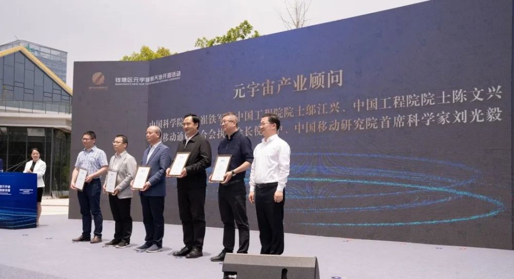 活动当天,中科院院士崔铁军、中国工程院院士邬江兴、中国工程院院士陈文兴、中国移动通信联合会执行会长倪建中及中国移动研究院首席科学家刘光毅等5位专家被聘为元宇宙产业顾问,为今后钱塘区元宇宙产业发展出谋划策。