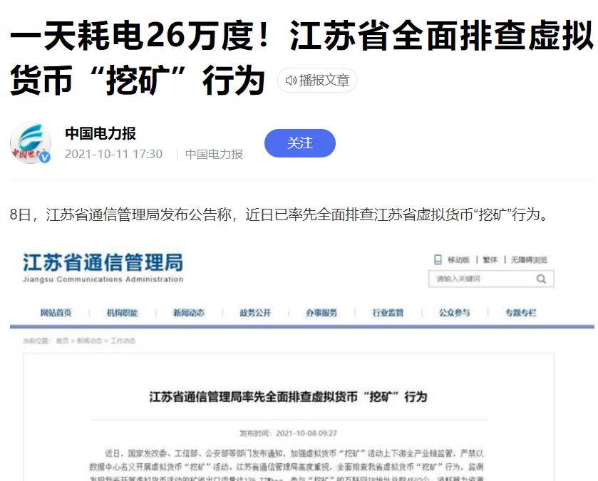 继2021年9月24日,国家发展改革委、中央宣传部、中央网信办等11个部门印发《关于整治虚拟货币“挖矿”活动的通知》后,16个省、自治区、直辖市等陆续出台相关政策,采取实行虚拟货币“挖矿”用电差别电价政策,设立整治虚拟货币“挖矿”举报电话等手段,监测矿池、检测IP、监控异常用电情形,严格排查虚拟货币“挖矿”活动。