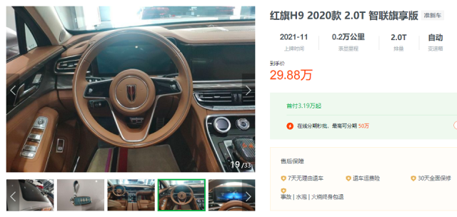 另外红旗H9的4年或10万公里质保相比一般品牌要更久一些,买二手车后在短时间内不用担心过保问题。