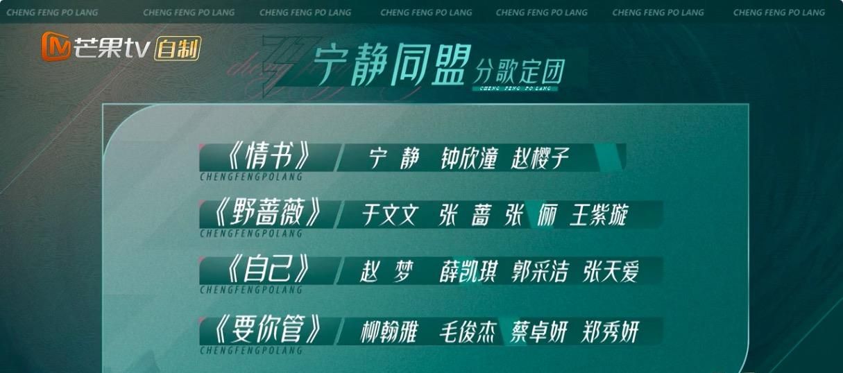 钟欣潼跟着《情书》走,选择加入宁静团队,阿Sa也顺势加入了宁静团队,再加上张蔷、郑秀妍、薛凯琪、郭采洁、张天爱,宁静阵营可以说是既有实力,又有人气。