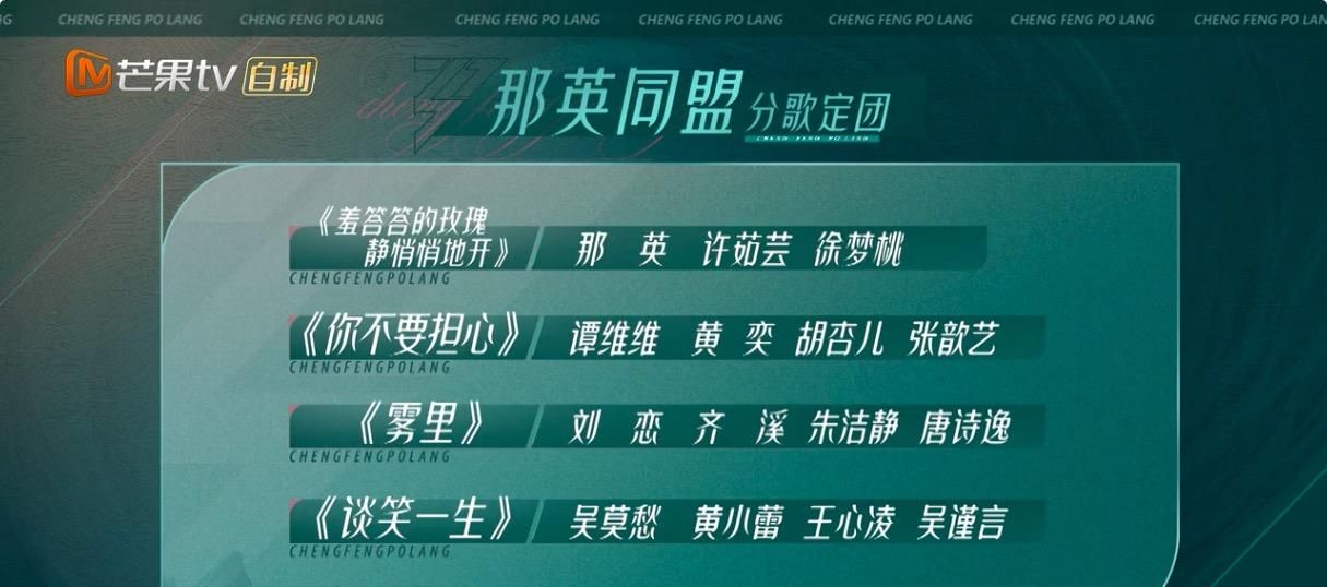 那英阵营,吴莫愁、黄小蕾、吴谨言、王心凌合作舞台《谈笑一生》,输给了柳翰雅、郑秀妍、阿Sa、毛俊杰合作的《要你管》。