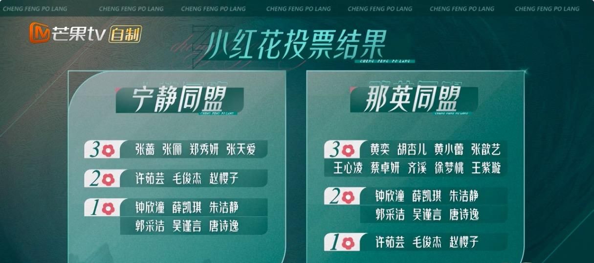 一共66朵小红花,那英收到了42朵,宁静只有24朵,其中有7位姐姐是把自己的3朵小红花都给了那英。