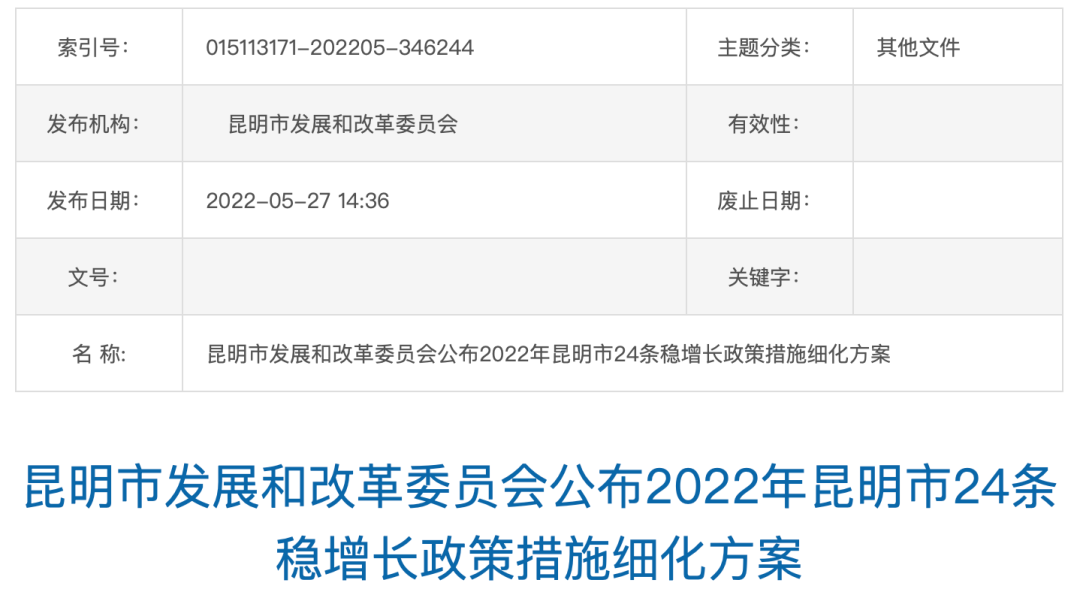 来了!《2022年昆明市24条稳增长政策措施细化方案》公布