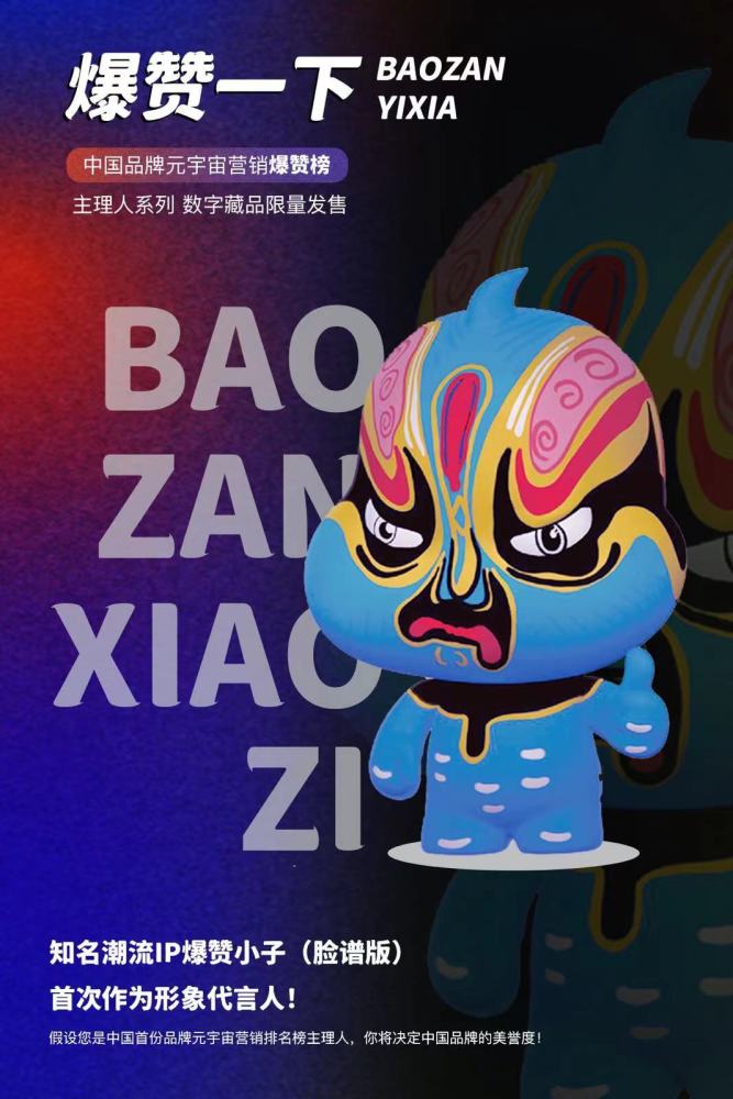 6月5日,中国领先的数字藏品电商平台数藏中国发布中国品牌元宇宙营销爆赞榜(简称“爆赞榜”)主理人系列爆赞小子脸谱版数字藏品。
