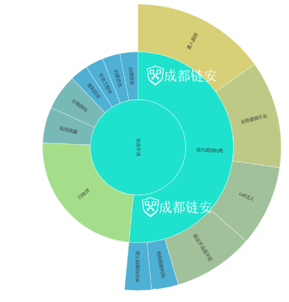 合约漏洞利用和闪电贷攻击是黑客最常使用的手段。50%的攻击手法为合约漏洞利用。