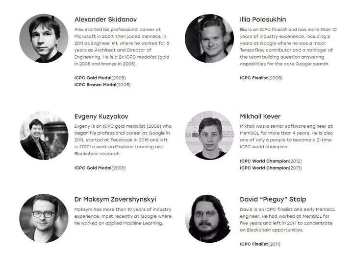 Illia Polosukhin:NEAR Protocol联合创始人,2008年ACM国际大学生程序设计竞赛(ICPC)决赛选手,是Google TensorFlow人工智能开源项目的主要代码贡献者,制作了机器学习领域上千个团队使用的编程工具。曾任Google深度学习小组项目主管,带队负责核心搜索算法业务近10年。