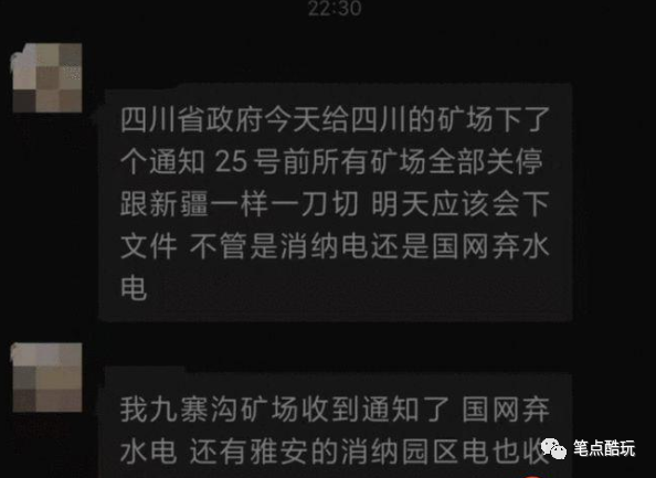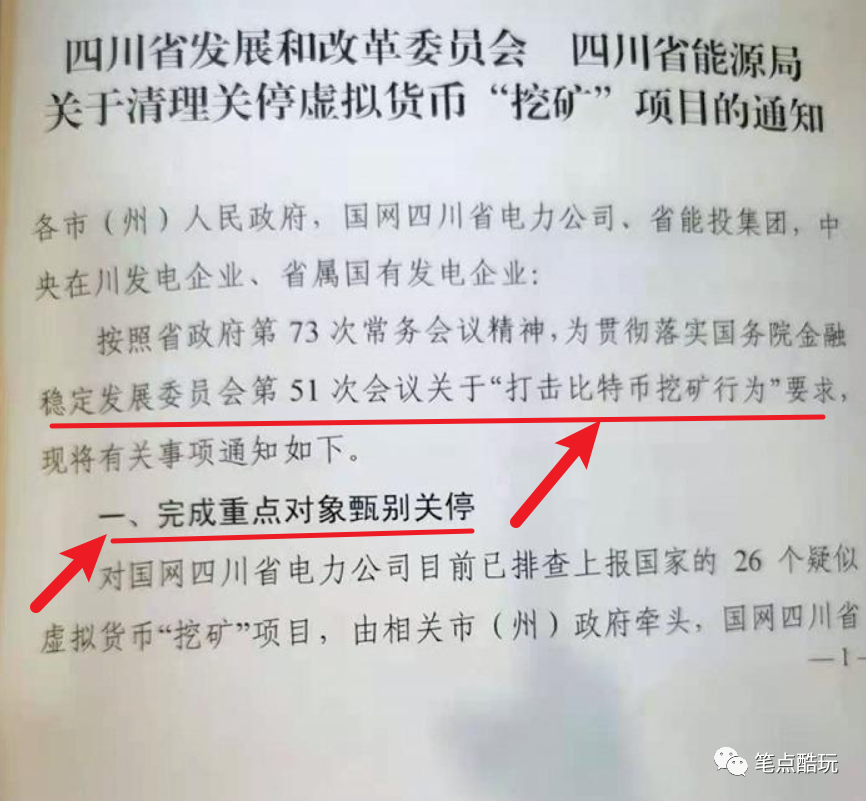 中国基金报称,6月25日之前,所有四川省内虚拟币矿场将全部关停, 证据是一份《四川省发展和改革委员会、四川省能源局关于清理关停虚拟货币“挖矿”项目的通知》文件——继蒙疆两地矿机关停之后,四川相关电力企业要在20日前完成甄别清理关停工作。至此,全球最大的比特币矿机聚集地四川也将被批量“断电清矿”,有关数据统计表明,关机的矿场总负荷达到8000000kW。