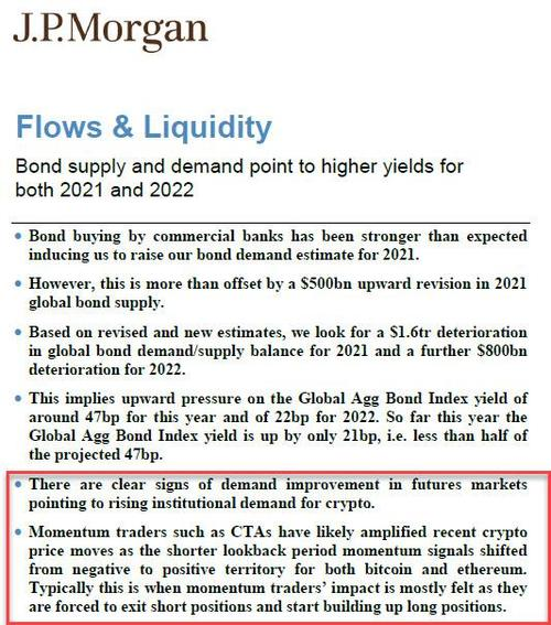 摩根大通指出,CTA(商品交易顾问)交易员被迫退出比特币和以太坊的空头头寸,并开始建立多头头寸。期货市场需求改善的明显迹象表明机构对加密货币的需求正在上升。