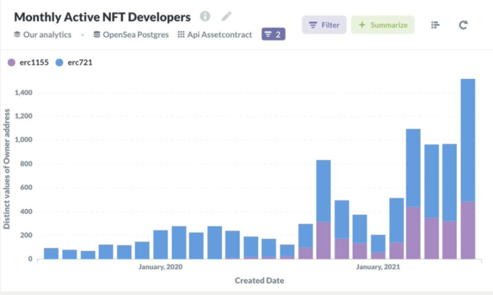 现在让我们讨论物品。在过去的一年里,NFT 市场已经显示出明显的过度投机的迹象。但同样明显的是,NFT 的硬编码承诺 —— 不可撤销的所有权,开放的经济,以及无休止地重新使用虚拟资产的能力 —— 已经带来了大量的消费者支出。开放标准通常难以产生更大的开发者收入,特别是在媒体产业,在加密货币领域则不然。