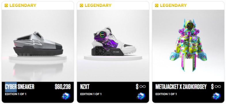 以RTFKT的崛起为例,2020年2月,RTFKT团队通过PS.合成一双名为「Cybersneaker」的球鞋到出席活动的马斯克脚上,马斯克莫名“被带货”,随后这双 NFT 球鞋在NFT交易平台 SuperRare 上以30ETH价格拍卖,而后竞价一度达65ETH。