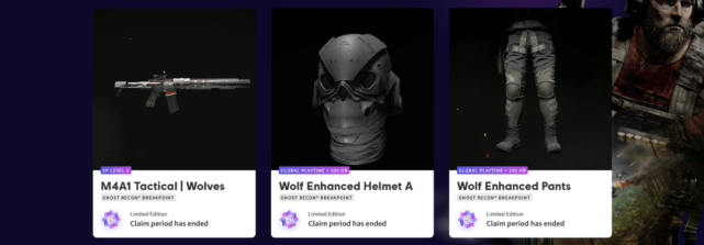 Ubisoft为游戏《火线猎杀:绝境》(Tom Clancy's Ghost Recon Breakpoint)发表的三款NFT。(Ubisoft网页截图)