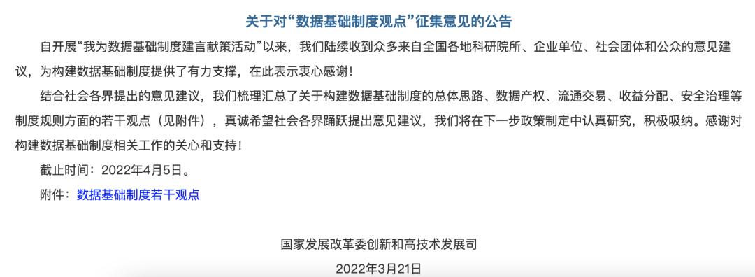 国家发改委官网就“数据基础制度观点” 面向社会公开征求意见