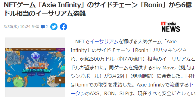 区块链平台Ronin被黑6亿多美元加密货币被盗
